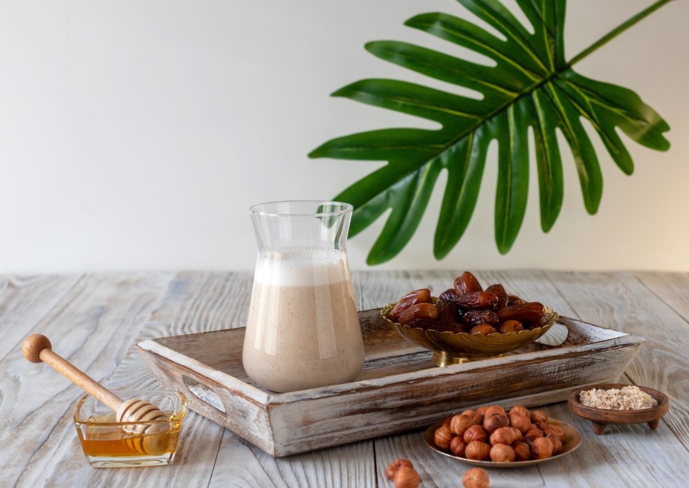 - وجبة الإفطار: تناول 7 حبات تمر، واختر بين كوب من الحليب قليل الدسم أو كوب من الزبادي.