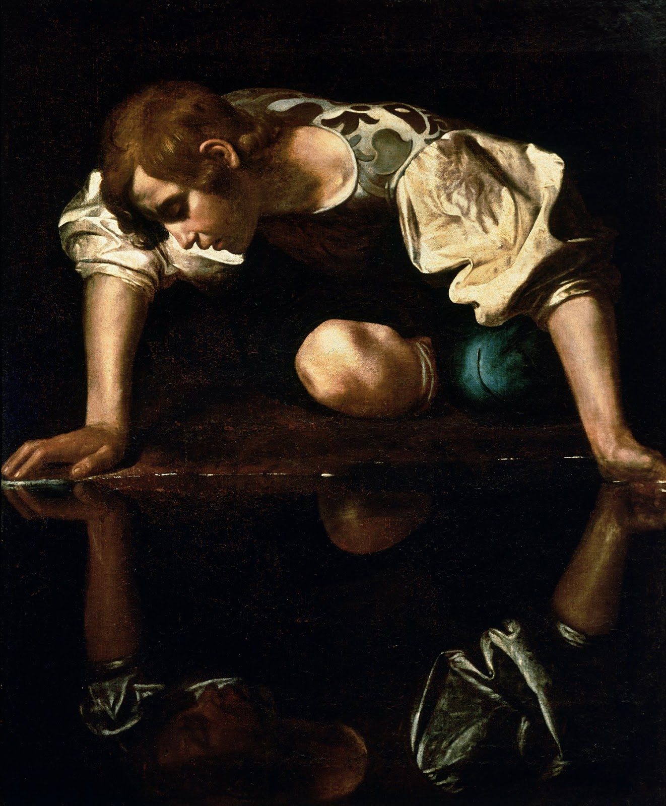 حسب الميثولوجيا الإغريقية، قررت الآلهة معاقبة نرسيس بأن جعلته يرى صورة نفسه في البحيرة ليقع في حب هذه الصورة دون أن يدري أنه وقع في حب نفسه، وعندما اكتشف الأمر أصابه الارتباك وانتحر.
