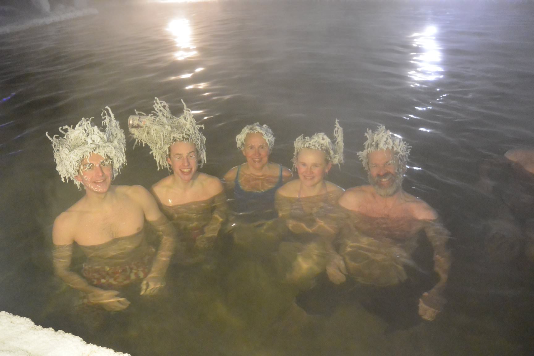 ويتركون شعرهم يتجمَّد عند خروجهم من مياه الينابيع إلى المنطقة المحيطة بها، التي تبلغ درجة حرارتها 22 درجة فهرنهايت (5.5 درجة مئوية تحت الصفر).