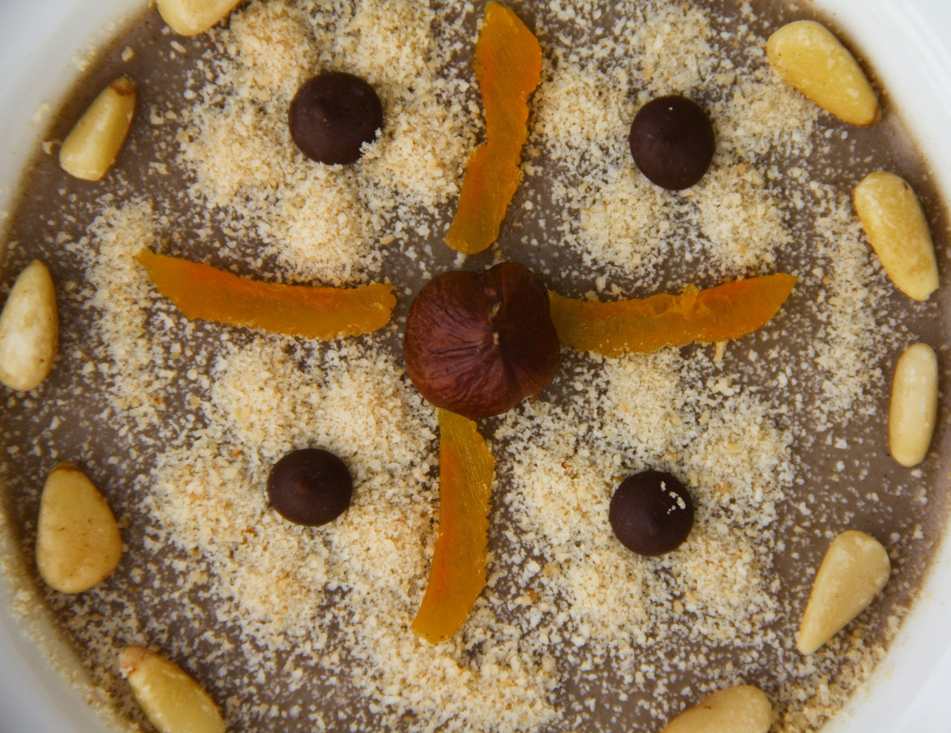 بعدها نقوم بوضعها فوق العصيدة ونتركها فترة من الزمن حتى تبرد، حينها نقوم بتزيينها بالبندق واللوز والفستق والجوز.