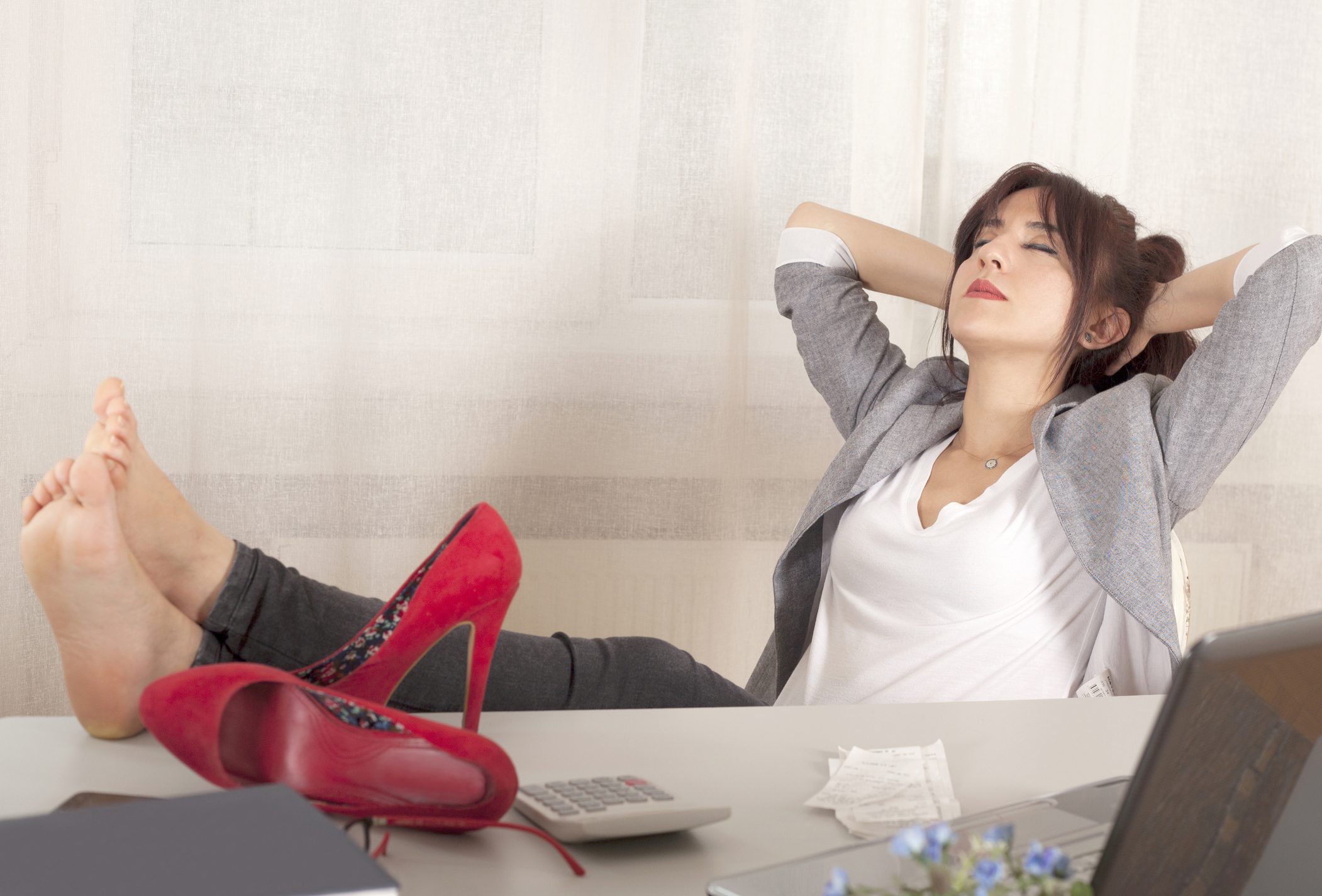 6. مددي قدميك بعد أن تخلعي حذاءك