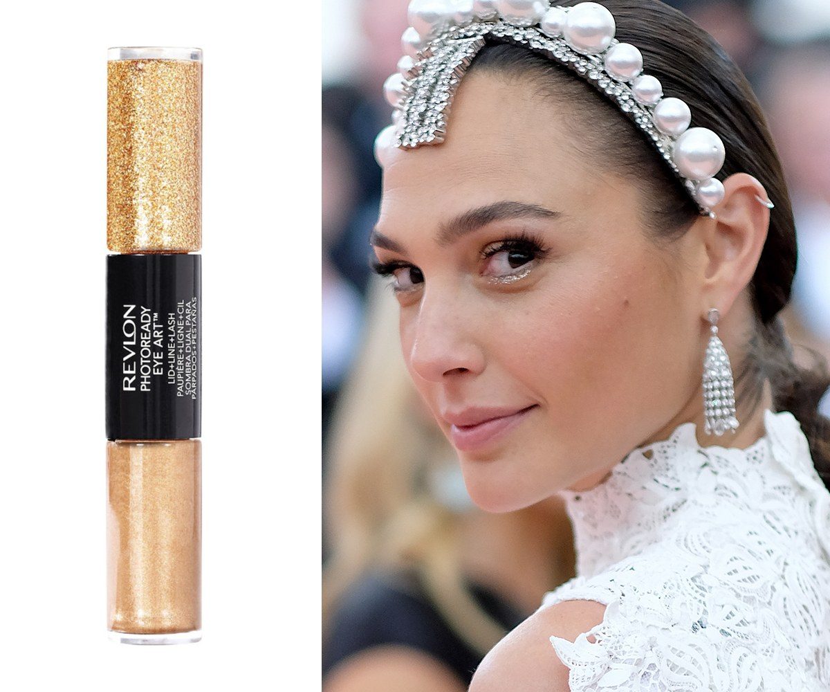 وقد لعب ملمع العيون دوراً كبيراً في هذه الإطلالة، إذ استخدمت “PhotoReady Eye Art in” من “Revlon” بدرجة”Burnished Bling”.