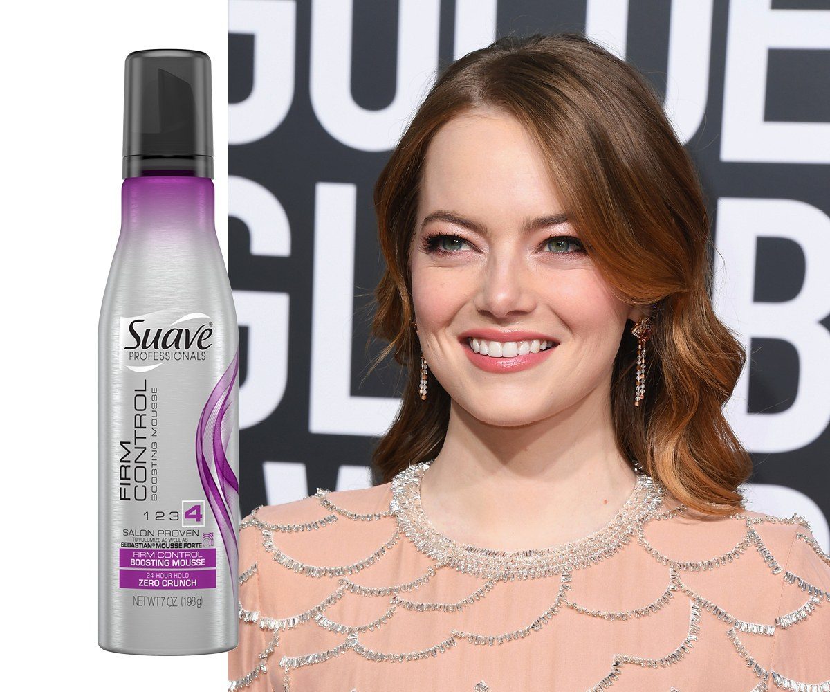 للحصول على تموجات الشعر الرائعة التي أطلت بها إيما ستون في حفل جوائز غولدن غلوب لعام 2019، قامت باستخدام موس تعزيز كثافة الشعر “Professionals Firm Control Boosting Mousse” من “Suave”، والمتوفر على موقع walmart.com بسعر 3 دولارات فقط.