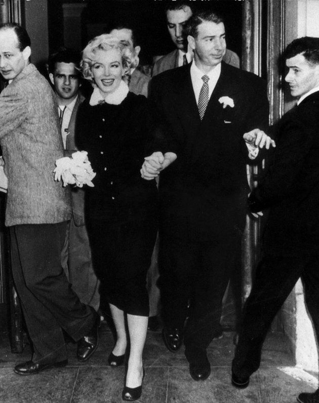 لعل فستان زفاف النجمة مارلين مونرو هو الفستان الأقل تقليدية في هذه القائمة، إذ اختارت مونرو ارتداء الأسود في زفافها من لاعب البيسبول المتقاعد جو ديماجيو في عام  1954.