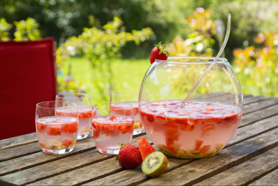 البطيخ الأحمر والخيار من أنواع الفواكه والخيار التي تحوي نسبة جيدة من المياه فيها، لذلك فهي منعشة جداً، خاصة إذا تم إضافة القليل من صودا الليمون معها.