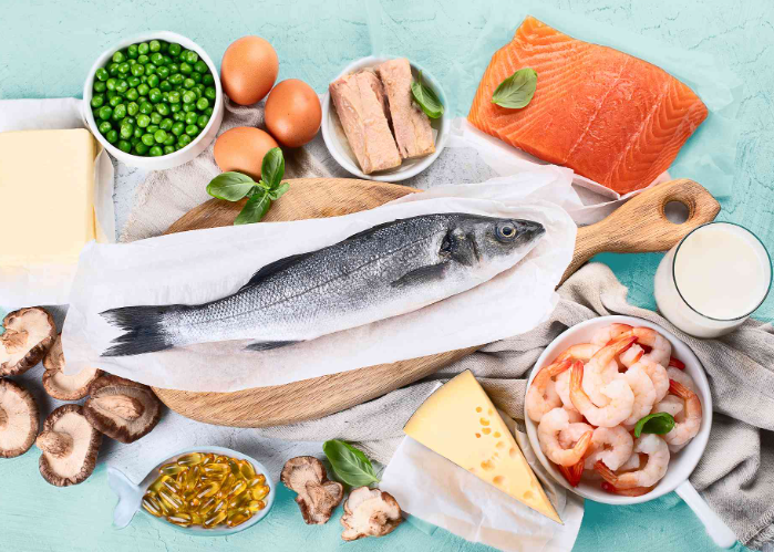 أما بالنسبة لتناول الأطعمة الغنية بفيتامين د، فإن الأسماك الدهنية مثل السلمون، وكبد البقر، والأجبان، والفطر، وصفار البيض، وبعض المواد الغذائية المدعمة بفيتامين د، مثل بعض حبوب الإفطار وعصير البرتقال والحليب ومشروبات الصويا والمارجرين، يمكن أن تساعد في علاج نقص هذا الفيتامين.