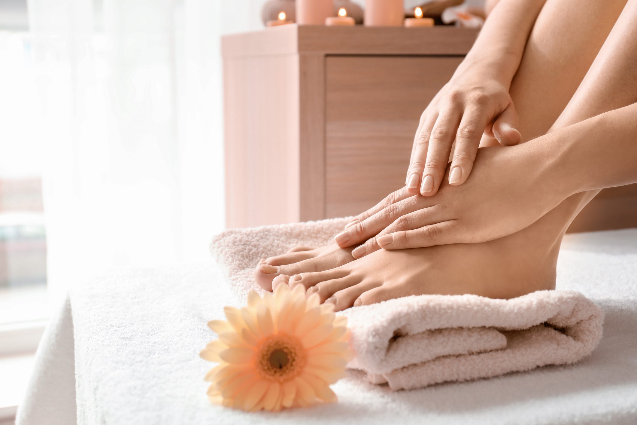 غلفي قدميك ببلاستيك التغليف، مع تغطيتهما بمنشفة ساخنة بعد ذلك.