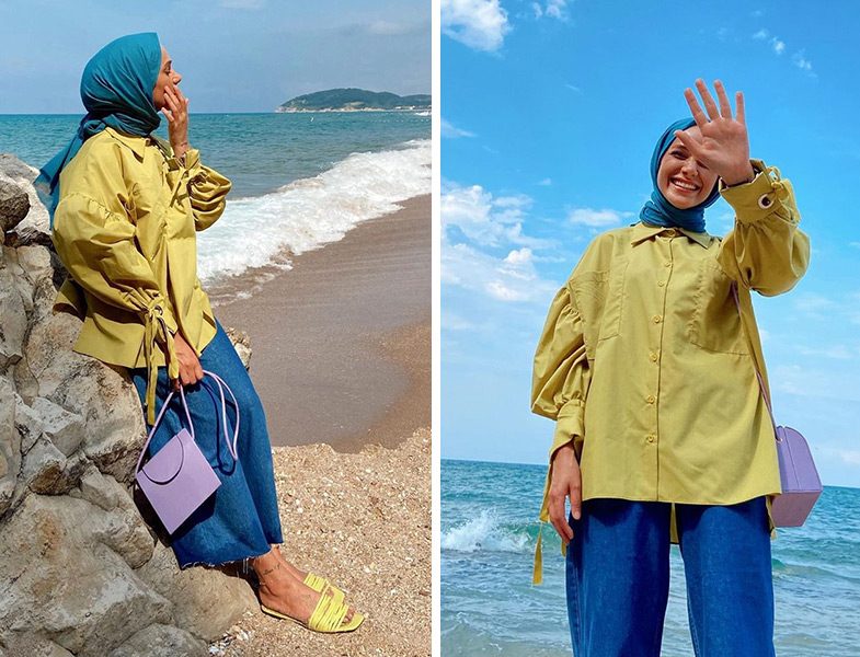 هل تبحثين عن مظهر شبابي للقيام بالرحلات أو التجول مع أصدقائك ولكن بألوان الموضة؟ خذي اللونين الأزرق السديمي والأصفر الزعفراني بعين الاعتبار.