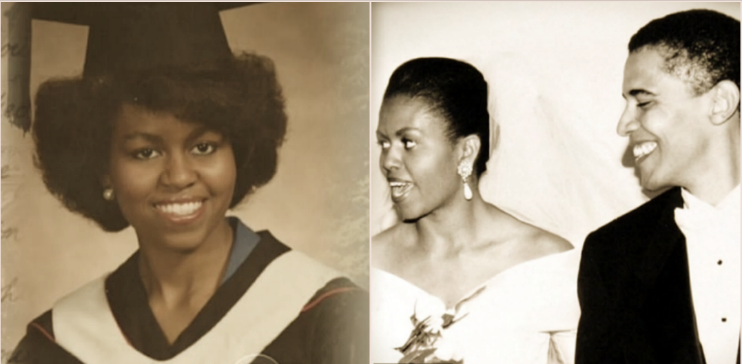 تقول في الرسالة “عزيزتي ميشي، ها أنت ذا بسترة الجينز وضفائر شعرك، بعيدة تماماً عن شقة جنوب شيكاغو الصغيرة التي نشأتِ فيها.