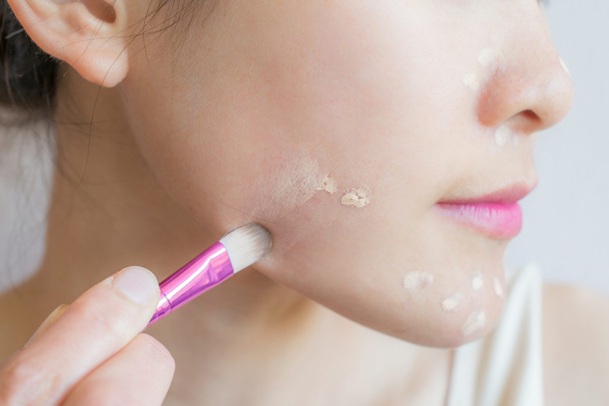 ويمكن تحقيق الحيلة باستخدام فرشاة الدمج وتنقيط الألوان المختلفة على البشرة، ثم مزجها بطريقة لإنشاء لون محايد مثالي لإخفاء عيوب البشرة.