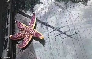 ونشرت الصحيفة عدداً من الصور التي تظهر سقوط تلك المخلوقات البحرية في شوارع الصين وعلى السيارات خلال عاصفة قوية هبَّت على البلاد.