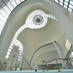 ويعتبر المسجد المشيد بالإسمنت والزجاج، بمآذنه المرتفعة 55 مترا وقبته الشاسعة من أضخم مساجد أوروبا، وهو مصمم بحسب مهندسه بول بوم ليكون رمزا للانفتاح.