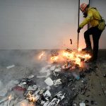 بحثت فرق من الأطباء الشرعيين الذين يرتدون الملابس البيضاء، والذين تعاونهم كلاب مدربة الثلاثاء 13 نوفمبر/تشرين الثاني، عن جماجم ورفات أخرى للضحايا بين أنقاض متفحمة في حرائق غابات كاليفورنيا .