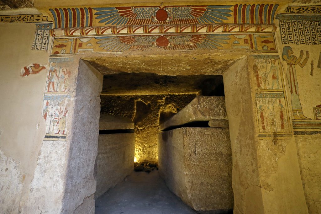 وقال مسؤولون إن المقبرة بُنيت لرجل يدعى “توتو” وزوجته، وهي إحدى 7 مقابر اكتشفت في المنطقة، في أكتوبر/تشرين الأول، عندما ضبطت السلطات مهربين يحفرون بشكل غير قانوني بحثاً عن آثار.