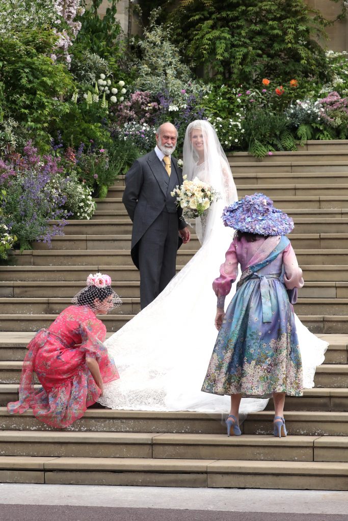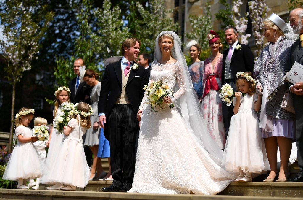 والعروس هي الليدي جابرييلا وندسور التي تبلغ من العمر 38 عاماً، وتعمل كاتبة حرة، وهي ابنة أمير وأميرة كنت، ووالدها هو مايكل من أبناء عمومة الملكة إليزابيث.