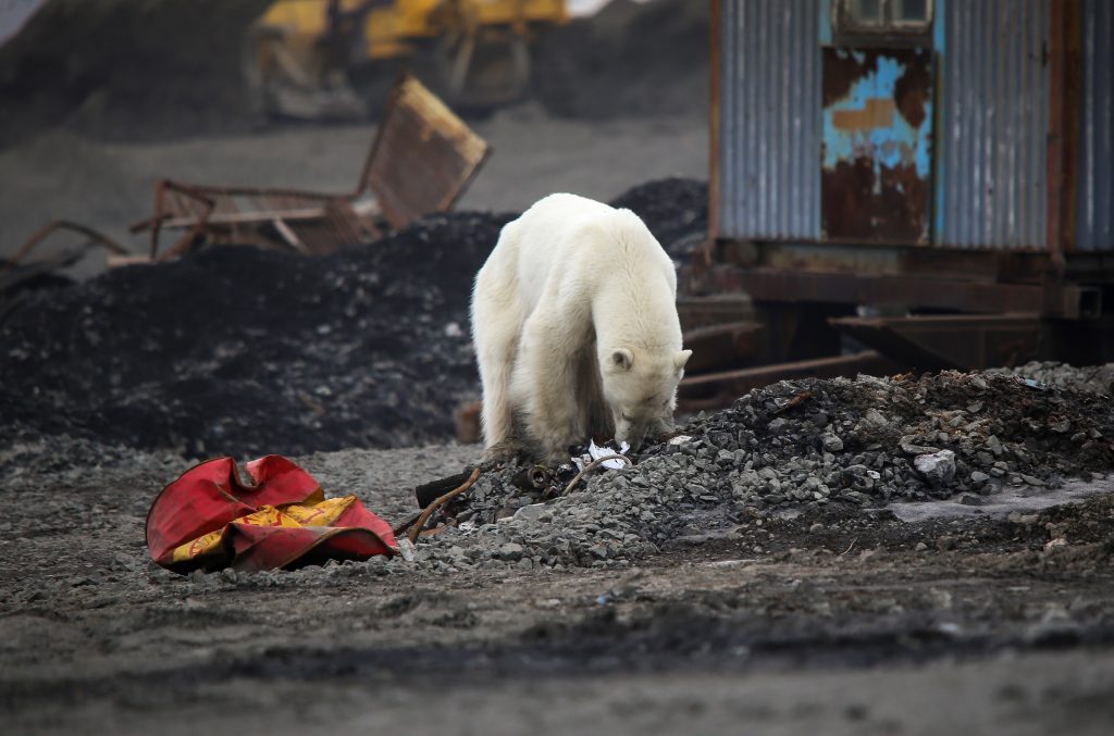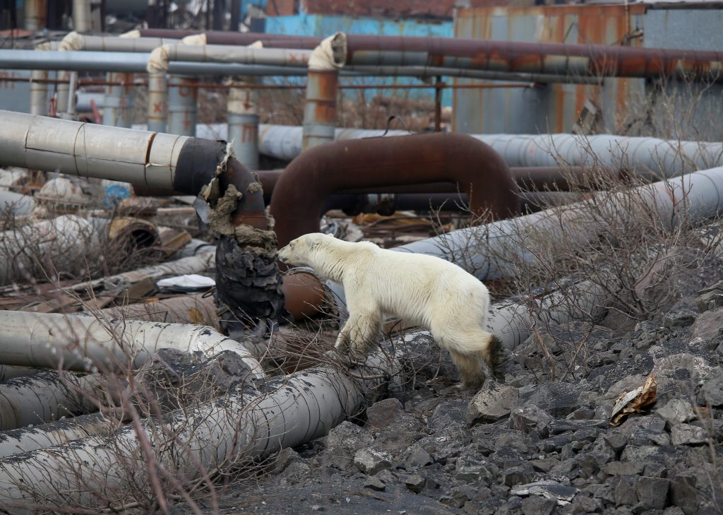 دبة قطبية مرهقة تتجول يائسة بمدينة صناعية في سيبيريا/رويترز