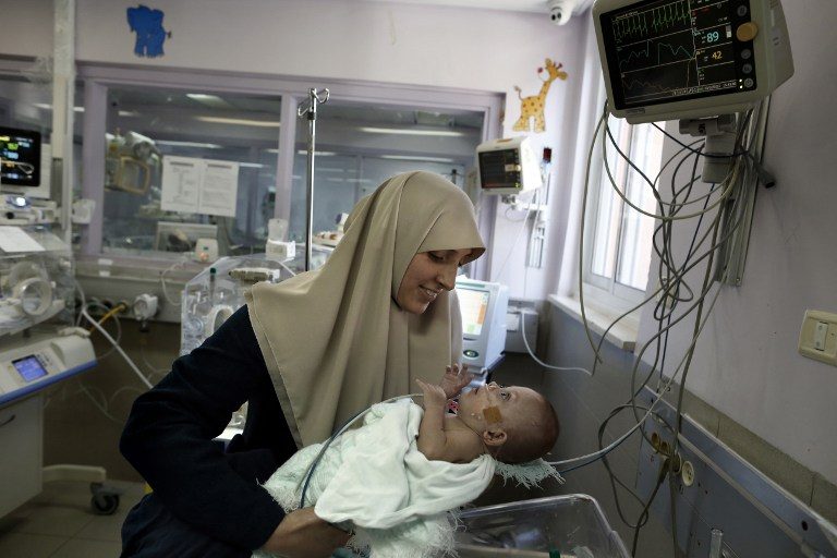 لكنَّ رضيعين داخل هذا المستشفى الفلسطيني الكائن في القدس، لم تستطِع أُم كل منهما الحضور؛ لأن كلتيهما حوصرتا على بُعد ساعة ونصف خلف خطوط الحصار الذي تفرضه إسرائيل على قطاع غزة. توفي الرضيعان الغزيّان لاحقاً، وأحدهما دُفن دون رؤية أمه مرة أخرى.