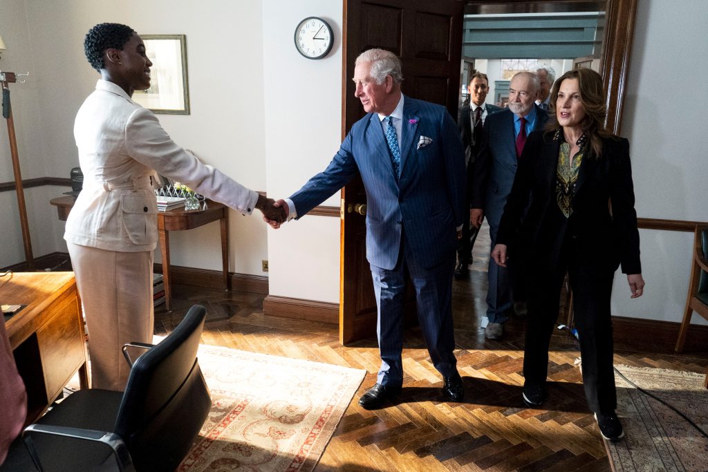 حيث التقى تشارلز (70 عاماً) بالممثل دانييل كريج، الذي يجسد دور عميل المخابرات البريطانية للمرة الخامسة، إلى جانب الممثلين ريف فاينز وناعومي هاريس اللذين يجسدان دور “إم” قائد الخدمة السرية والسكرتيرة الآنسة مونيبيني.