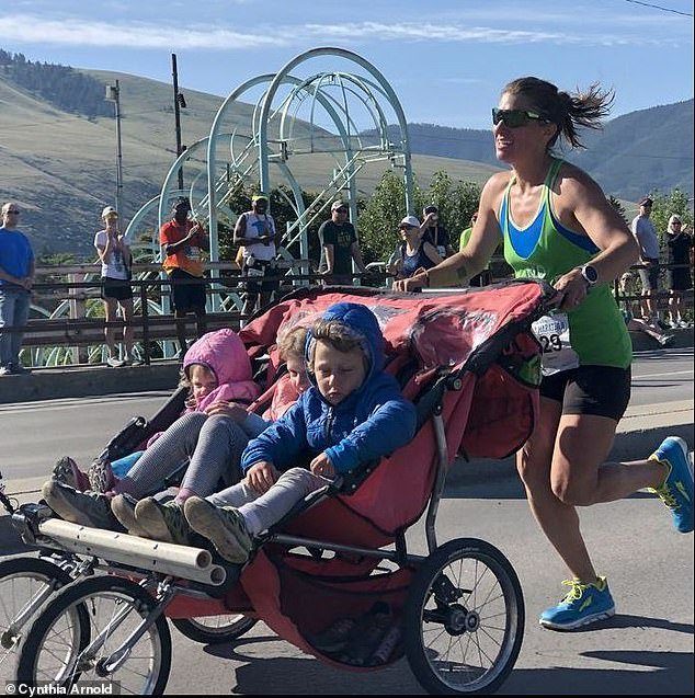 وتصدرت سنثيا آرنولد، البالغة من العمر 35 عاماً من مدينة بولسون في ولاية مونتانا، عناوين الصحف في العام الماضي، بعدما ركضت نصف ماراثون في ماراثون ميسولا، بينما كانت تدفع أطفالها الثلاثة في عربتهم.