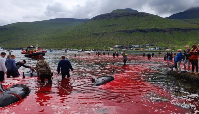 تحولت أجزاء من المياه المحيطة بجزر فارو إلى اللون الأحمر؛ بعد ذبح أكثر من 250 حوتاً بيد الصيادين في الأسبوع الماضي، وذلك حسبما قالت مجموعة معنية بالبيئة، وأشار تقرير لصحيفة The Independent البريطانية، الثلاثاء 21 يوليو/تموز 2020، إلى أن الحكومة المحلية تعرضت لانتقادات كثيرة بسبب “المجزرة”.