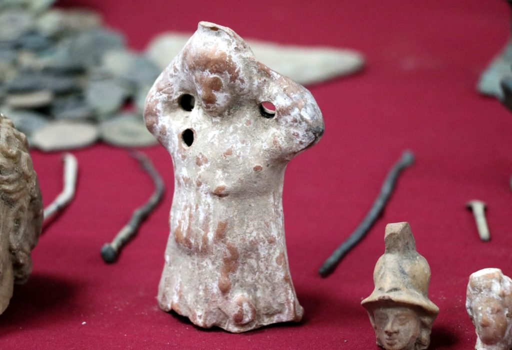 كما تم ضبط 6 قطع نقدية تدعى “إلكترون”، ونقود أخرى ذهبية وفضية وبرونزية تعود للحقبتين الرومانية والبيزنطية، إلى جانب كثير من التماثيل والخواتم والأساور والتحف.