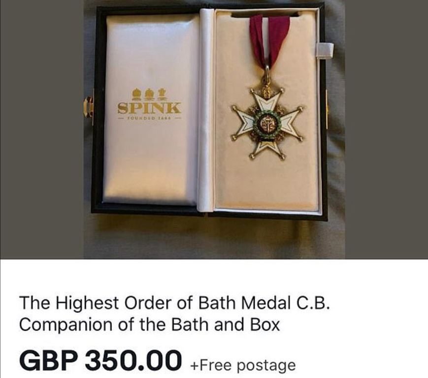 اكتُشف “نيشان الحَمَام” المنتمي إلى توني جونستون بيرت، الذي يعمل مديراً للأعمال المنزلية في القصر الملكي، معروضاً على موقع المزادات بحوالي 458 دولاراً أمريكياً.