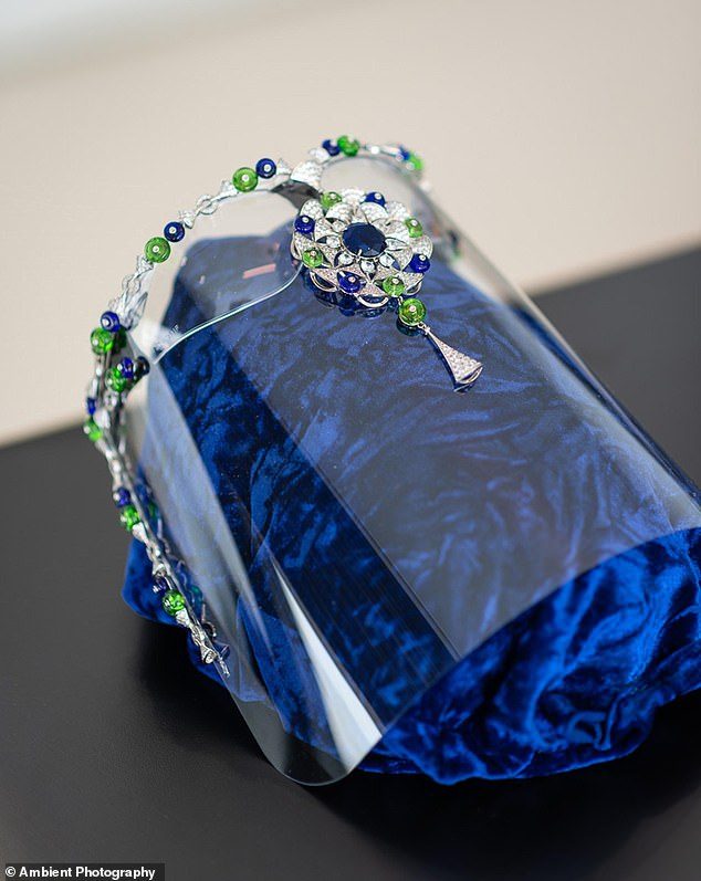 حولها نحو أربعة آلاف ألماسة صغيرة بوزن قيراط واحد وبقيمة 100 ألف جنيه إسترليني (129.41 ألف دولار)، وألف لؤلؤة من المياه العذبة بقيمة 80 ألف جنيه إسترليني (103.53 آلاف دولار).