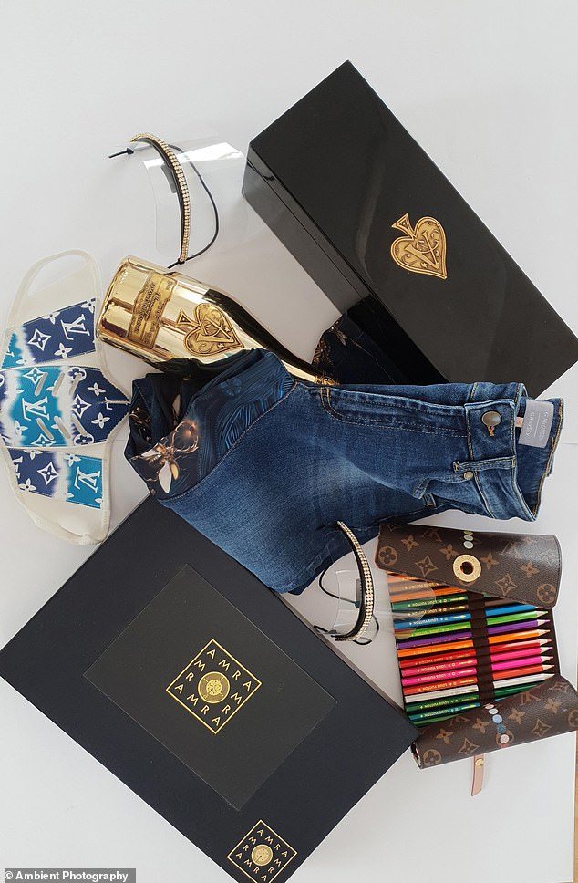 كما حصل المضيفون أيضاً على قناع للوجه من الجلد من Louis Vuitton، صُنع يدوياً عن طريق إعادة تدويره من محفظة جلدية بقيمة 85 جنيهاً إسترلينياً (110 دولارات)، وذهب، إلى جانب الكافيار، وغسول وجه وكريم ومَصل من AMRA للعناية بالبشرة بقيمة 250 جنيهاً إسترلينياً (323.53 دولار). كما رتبت لتنظيف وتعقيم كل المنازل المضيفة قبل الحفل وبعده.
