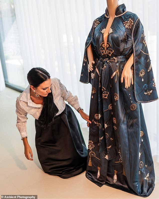 صاحبة الحدث حرصت على تركيز الأنظار على نفسها، وارتدت فستاناً قيمته 20.1 مليون جنيه إسترليني (26.01 مليون دولار) في هذه الأمسية. واستُلهم التصميم المصنوع خصوصاً من العباءة الشرق أوسطية الحديثة، ووضعته المصممة والفنانة البريطانية ديبي وينغهام (38 عاماً)، وهي مَن خططت أيضاً للحفل.