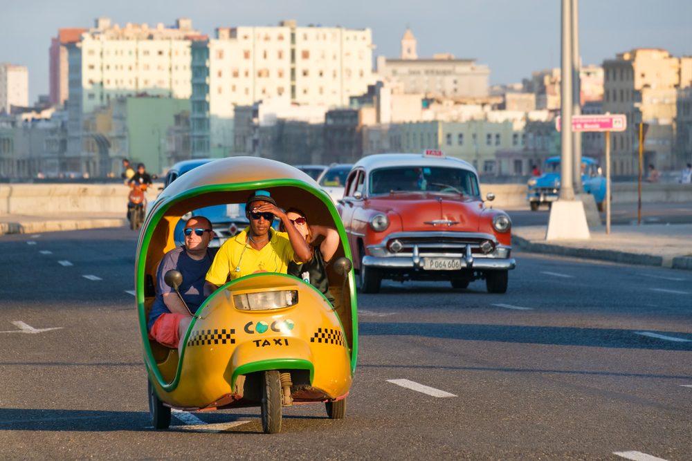 بدأت عربة كوكو تاكسي الآلية في هافانا في التسعينيات، ولكن في الوقت الحاضر تستفيد منها جميع المدن الكبرى في كوبا ويعود اسمها إلى شكلها حيث تشبه جوز الهند.