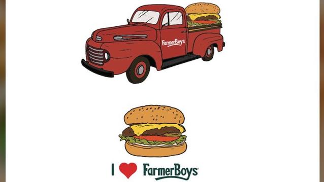 أما التصميم الثالث فيتكون من شطيرة برغر وعبارة “I heart Farmer Boys”، وهو ما قد يتطلب بعض التوضيح والشرح في الأماكن التي لم تنتشر فيها سلسلة المطاعم هذه بعد.