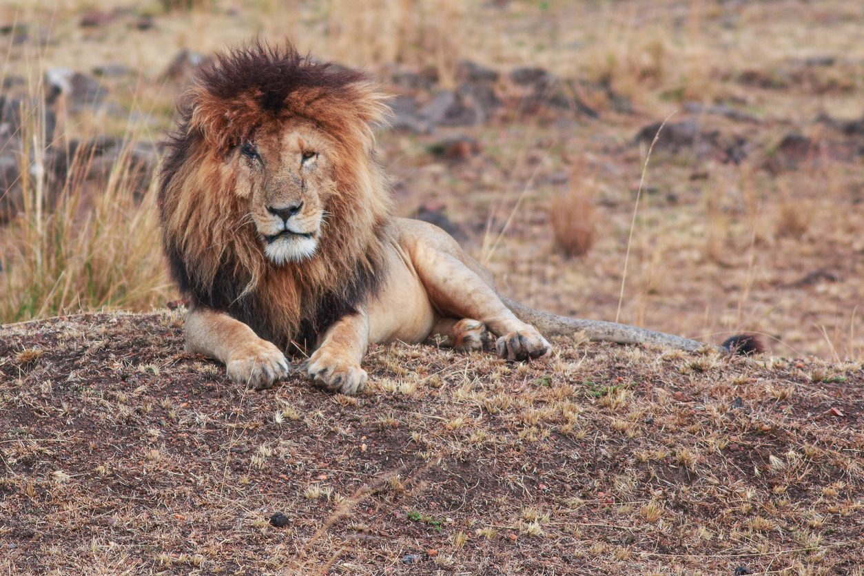 الأسد سكارفيس في محمية ماساي مارا الطبيعية في كينيا – iStock