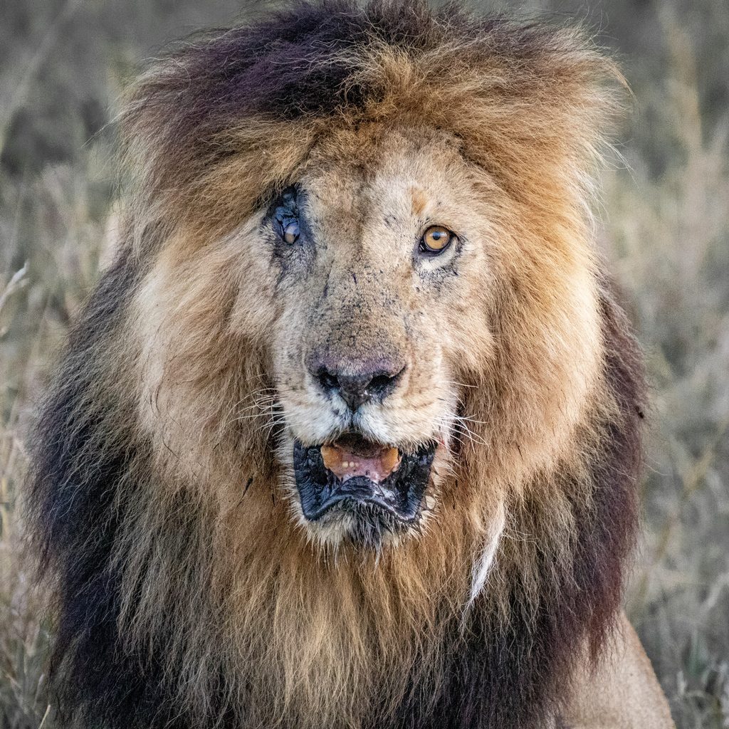 أصيب الأسد أثناء عملية صيد بخلع في ساقه الخلفية علاوة على إصابة جفنه المعروفة في شبابه – iStock
