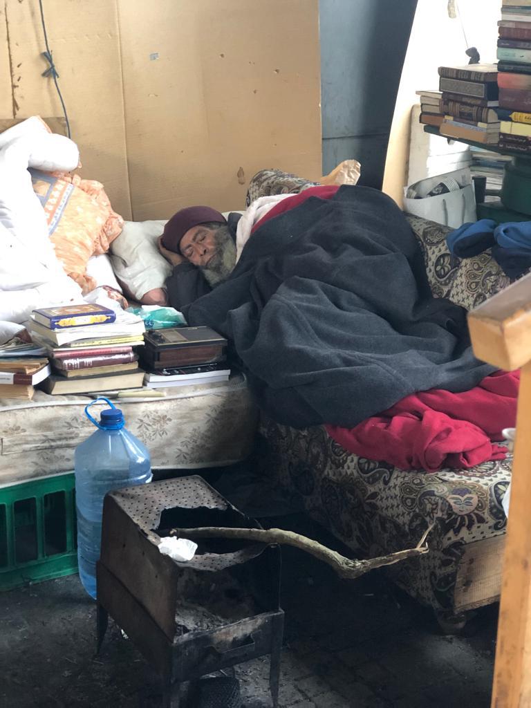 وبدأ المغربي بترتيب الكتب وبنى مكتبة من الكراتين ومنزلاً له من سرير من الحديد قدّمه له أحد الأشخاص وكرسي بلاستيكي وبعض الأخشاب التي ركبّها فوق بعضها البعض ووضع بها بعض حاجياته، وجعل من هذا المكان منزلاً له ينام ويقضي كل وقته به بين الكتب ولا يفارق المكان سوى للقيام بمشوار مهمّ أو لقضاء حاجاته أو للاستحمام في محطة الوقود المجاورة.