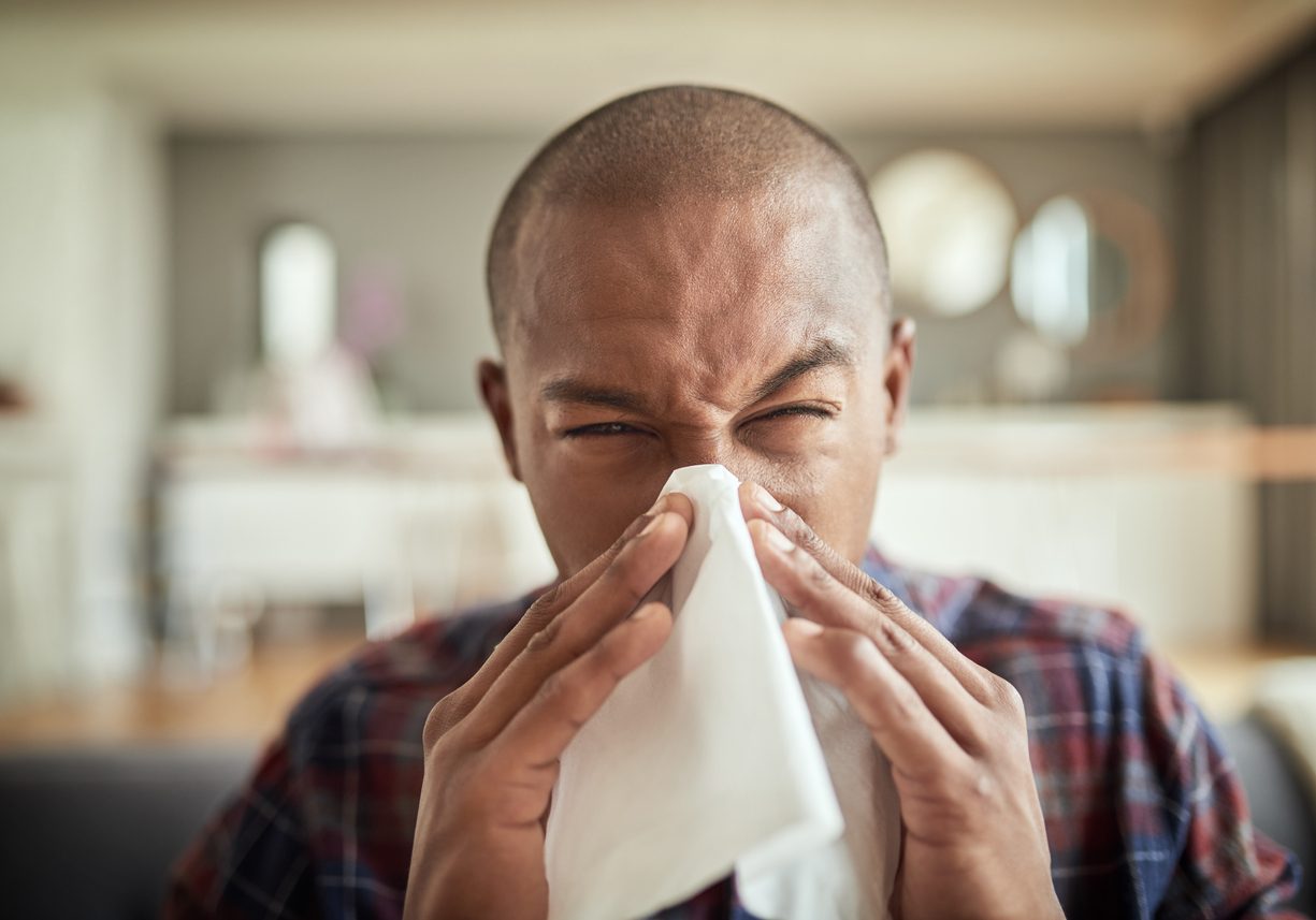 - الحساسية: إذا كنت تعاني من بعض الحساسية، فقد تجد أن أنفك غالباً ما يكون مزعجاً ومثيراً للمتاعب. يمكن أن تسبب بعض المحفزات، مثل الغبار وحبوب اللقاح ووبر الحيوانات الأليفة، في إحداث رد فعل تحسسي يسبب تورماً في أنسجة الأنف ويؤدي إلى احتقان الأنف وانسداده بالكامل.