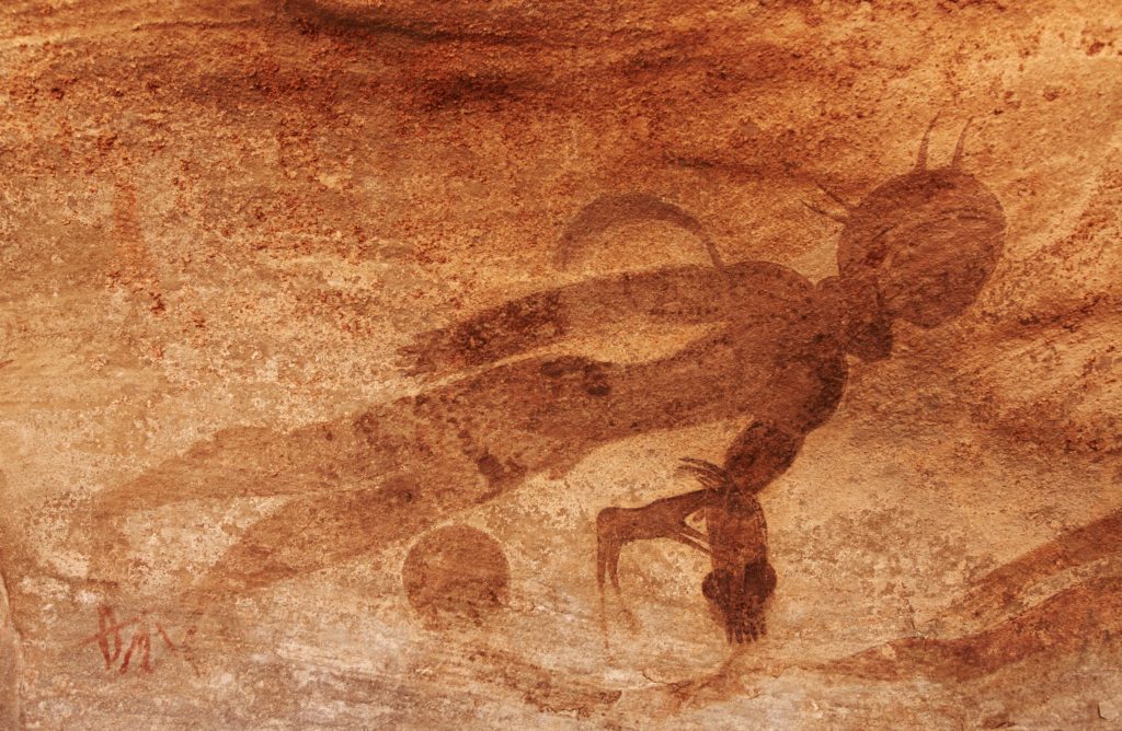 تمثل اللوحات الأكثر استثنائية احتفالات غامضة، ناهيك عن مخلوقات مبهمة ذات أشكال غريبة ومظاهر حيّرت العلماء كونها خارج كوكب الأرض، أشهرها “الإله العظيم”، “الرامي الأسود”، “المريخ”، “الرؤوس المستديرة”، “العربات”، “السباحون ذوو الأبواق” و”النساء ذوات الأقنعة”، بحسب the outsiders travel.