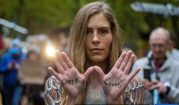 قامت الناشطة البيئية هانا بورن تايلور، بلفت الأنظار مؤخراً؛ إثر قيامها بالتجول في شوارع لندن عارية، تعبيراً عن مساندتها للطيور المهددة بالانقراض، حيث تركت عصفوراً صغيراً يعشش في شعرها لمدة 84 يوماً، بحسب صحيفة ديلي ميل البريطانية السبت 12 نوفمبر/تشرين الثاني 2022.