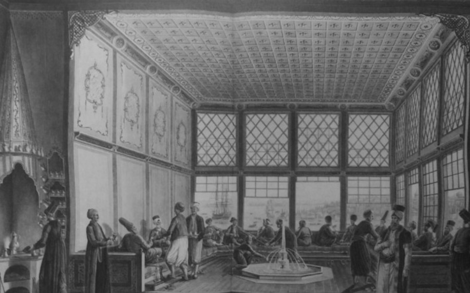 كانت محال القهوة شائعة حول الإمبراطورية، حيث وصلت إلى العاصمة العثمانية في خمسينيات القرن السادس عشر عن طريق ميناء المخا في اليمن. وكان السلطان سليمان القانوني نفسه عاشقاً للمشروب، وهو الذي أسس الطقوس المرتبطة بشرب القهوة تحت مسمى وظيفة “صانع القهوة الرئيسي”، التي تضمنت الكؤوس الخزفية المطرزة  المصنوعة بحرفية فريدة في أفران إزنيق وكوتاهية.