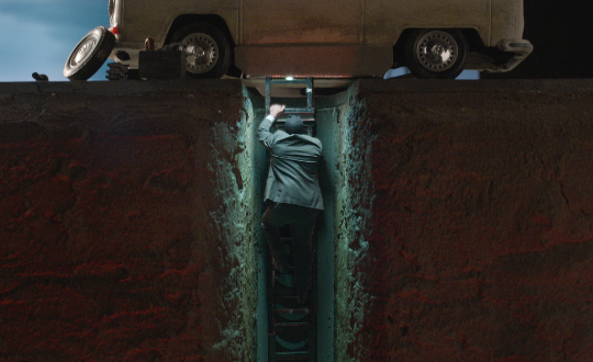 أما بخصوص النفق فقد وضعت الفرقة قنبلة بلاستيكية تظهر وكأنها حقيقية لتطلب الشرطة فرقاً خاصة لالغائها؛ وهذا ما يكسبهم المزيد من الوقت للهروب بالشاحنة التي تنتظرهم خارج أنفاق الصرف الصحي.
