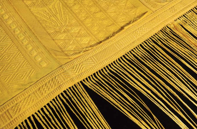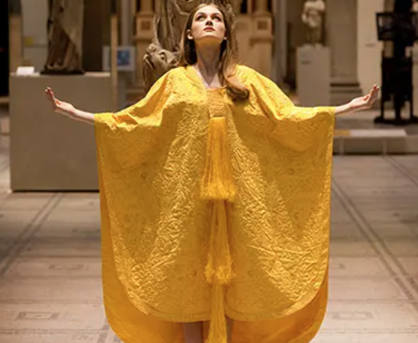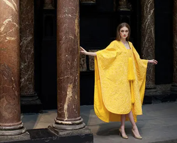 هذا الرداء الذهبي هو واحد من الرداءين الذين صُنعا من “الحرير الذهبي”، وهما الثوبان الوحيدان من نوعهما في العالم، قامت عارضة الأزياء بيانكا غافريلاس باستعراض الرداء الذهبي النادر المصنوع يدوياً في متحف فيكتوريا آند ألبرت في لندن سنة 2012.