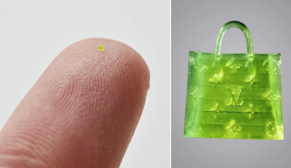 وبحسب الموقع، فإن الحقيبة التي وصفت بأنها “أصغر من ذرة ملح” لونها أخضر فسفوري ومُصممة على غرار حقيبة OnTheGo الشهيرة من دار “لويس فويتون” الفرنسية للمنتجات الفاخرة، وقد صُنعت بطابعة ثلاثية الأبعاد استُخدمت فيها طرق طباعة البلمرة ثنائية الفوتون. ويمكن للمرء إذا نظر إلى الحقيبة عبر المجهر أن يرى علامة “LV” (لويس فيتون) بوضوح على مقدمتها.