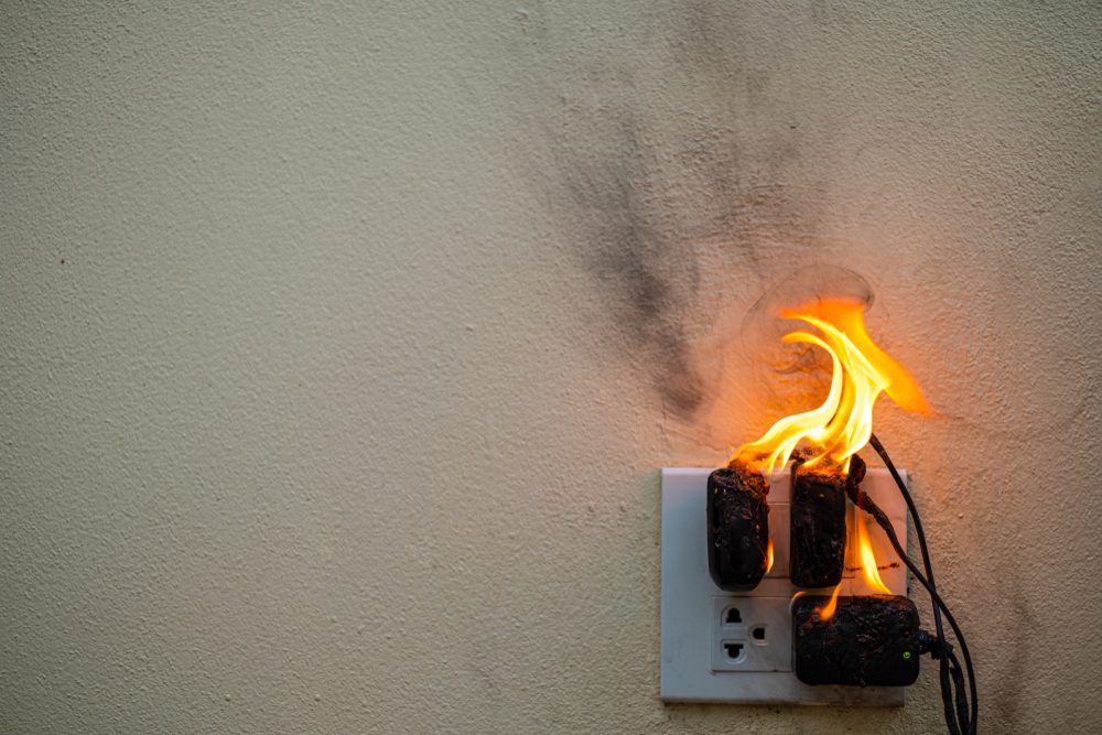 أما في حال كان الحريق ناجماً عن شاحن أو أي تلامس للكهرباء، فسارع فوراً بقطع التيار الكهربائي عن المنزل زمناً، ثم قم بإطفاء النار، سواء عبر استخدام بطانية أو قماش مبلول بالماء، أو عبر استخدام طفارية الحريق في حال وجودها.