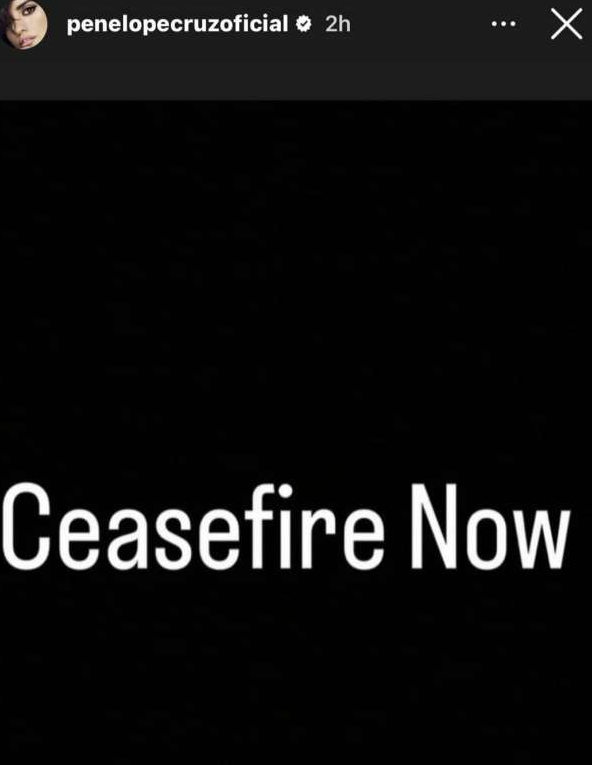 شاركت الممثلة الإسبانية الشهيرة بينيلوبي كروز في خاصية “ستوري” على حسابها على إنستغرام رسالةً جاء فيها “يجب وقف إطلاق النار الآن”.