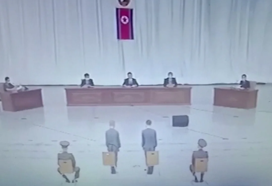 أصدرت مجموعة بحثية كورية جنوبية لقطات نادرة تشير إلى محكمة علنية لمراهقين كوريين شماليين تم إدانتهما بالأشغال الشاقة. تمت هذه الإدانة بسبب توزيعهما ومشاهدتهما للدراما الكورية الجنوبية، التي تعتبر محظورة في الجارة كوريا الشمالية.