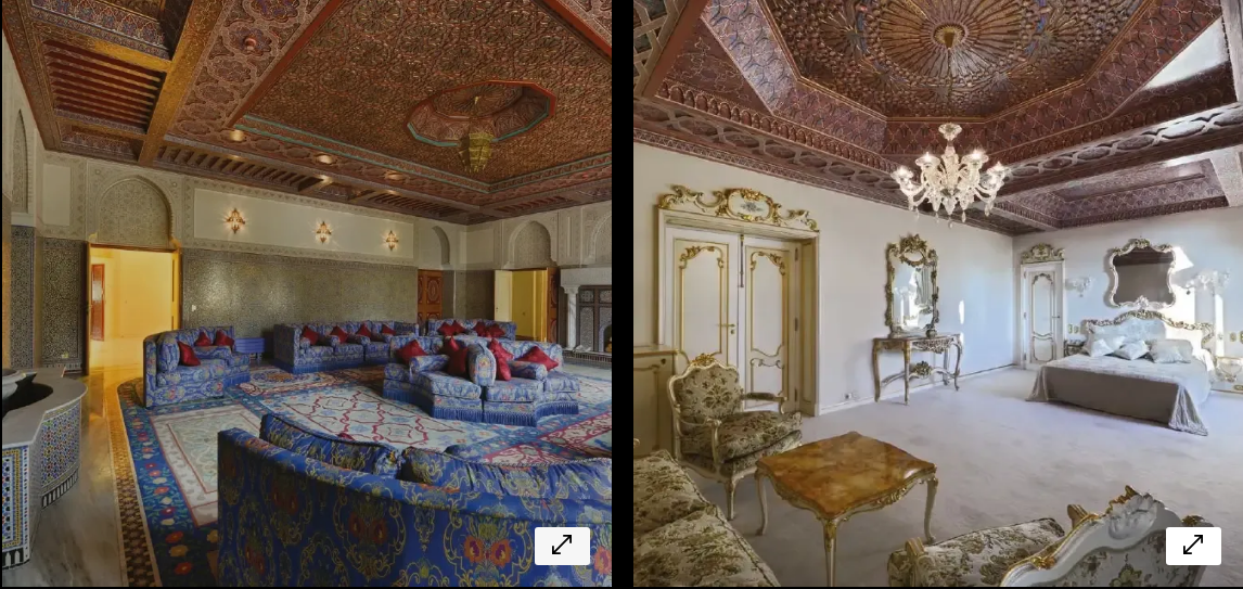 وحسب الصور التي التقطتها الوكيلة العقارية للقصر، فإن المالك الذي اشترى من ملك المغرب القصر لم يُغير أي شيء سواء في الديكور أو الأثاث.