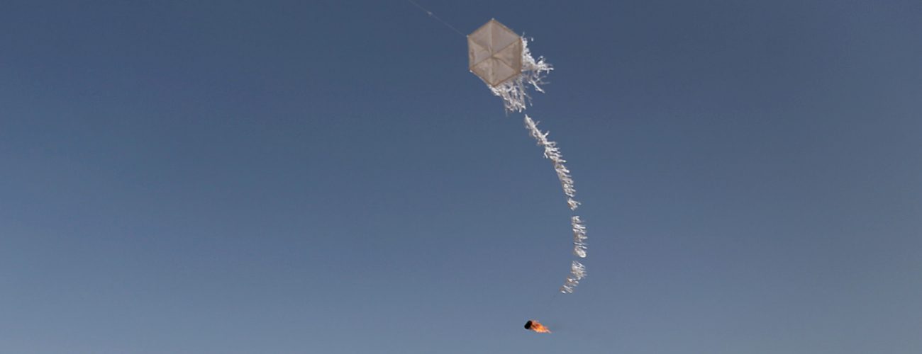 يقف مصعب القصاص بين مجموعة من الشبان على بُعد مئات أمتار من الحدود الإسرائيلية لقطاع غزة. يعلّق علبة كولا فارغة مملوءة بمادة مشتعلة من اختراعه في ذيل طائرة ورقية