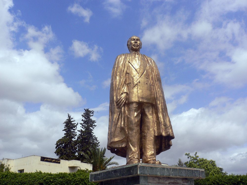 ينتصب وسط مدينة قالمة (شرق الجزائر) تمثال من البرونز، للرئيس الراحل هواري بومدين، حرص ناحتوه على إبراز أكبر قدر ممكن من التطابق مع الصورة الحقيقية للرجل، بقامته الفارهة النحيفة وهو يرتدي البرنوس (اللباس التقليدي الجزائري) ونظرته الثاقبة والموسطاش (الشارب) رمز الشموخ والرجولة عند الجزائريين.