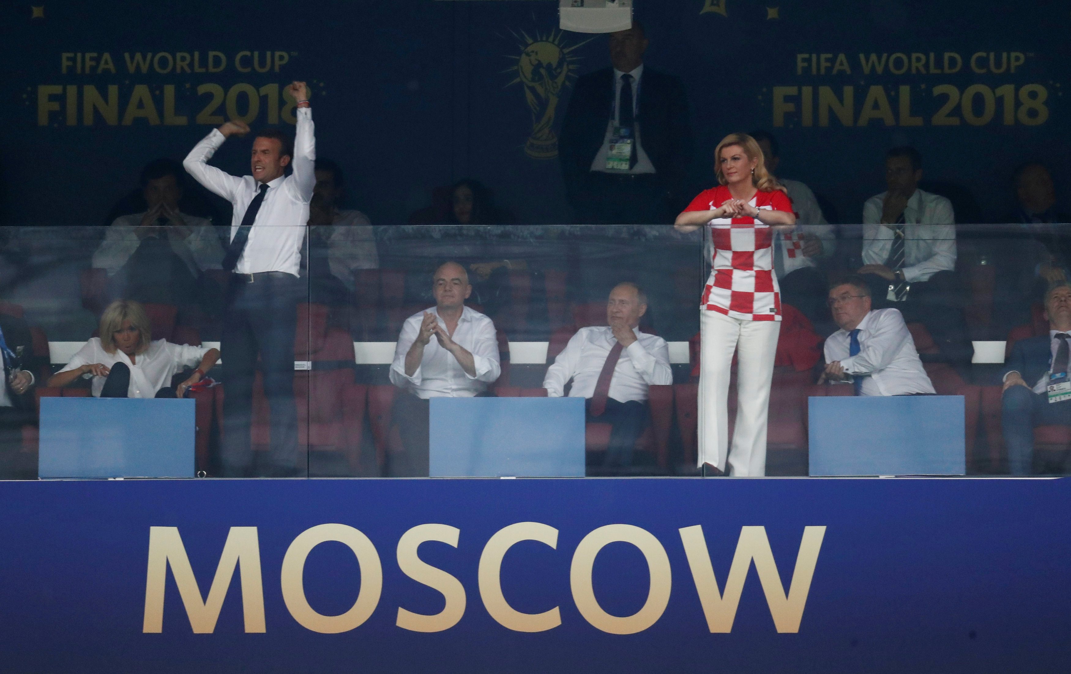 الرئيس الفرنسي ونظيرته الكرواتية خلال متابعة نهائي كأس العالم