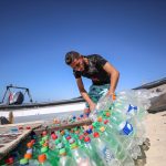 أبوزيد أمضى ساعات طويلة في تجميع هذا العدد من العبوات البلاستيكية المستعملة من على شاطئ بحر مدينة رفح، جنوبي قطاع غزة، حيث يسكن.