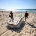 ورصّ العبوات بجانب بعضها البعض بواسطة خيوط صنارات صيد تالفة، كان قد جمّعها من صيادين، ووضع فوقها لوحاً خشبياً، ليساعده في الوقوف على متن القارب.